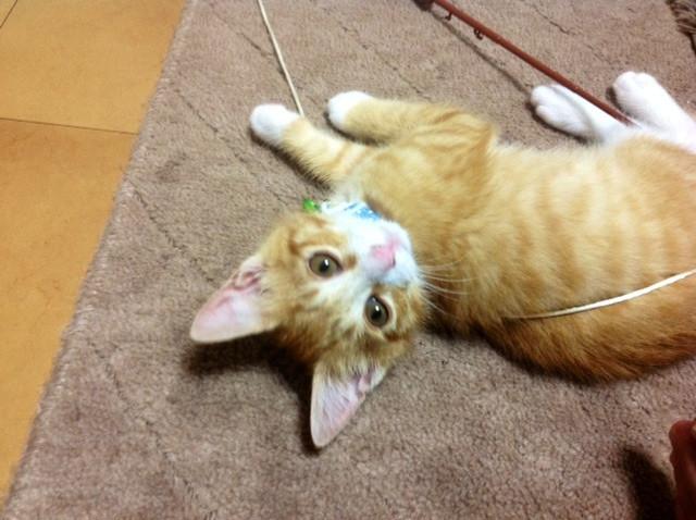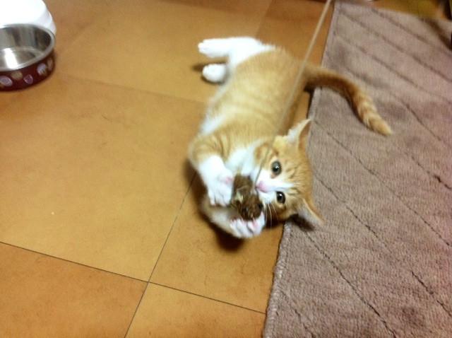 アキくん、猫じゃらしの、紐が???