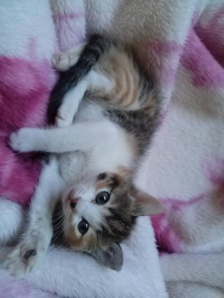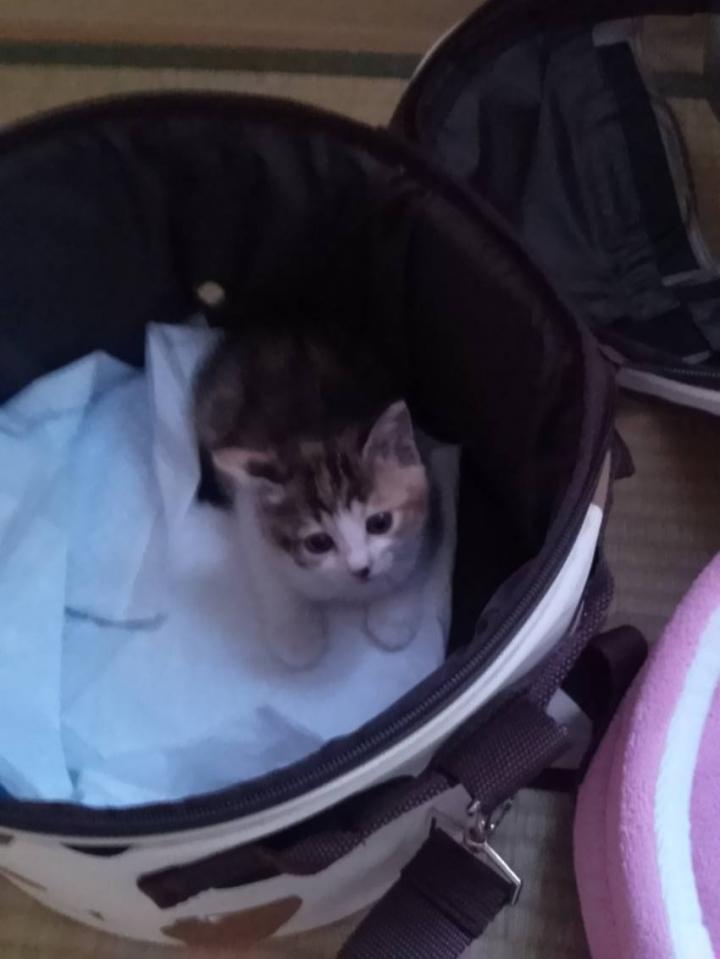 一晩経ってだいぶ部屋にも慣れて、シッポを立てて探索しています。トイレも何とか、カリカリと水飲みもできて一安心です。