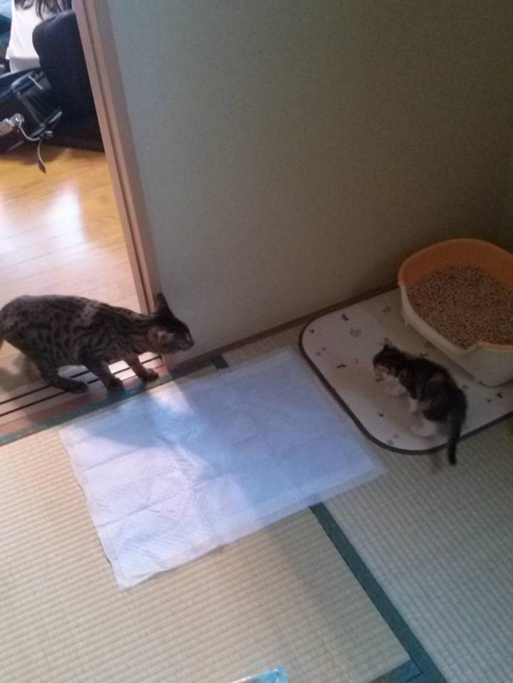 先住のベンガル猫達とちょっとだけ顔合わせを