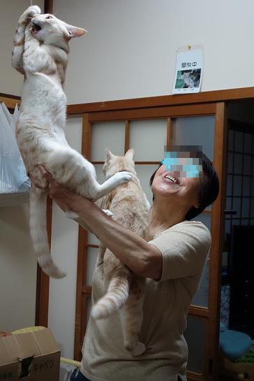 ミイの様子がたまらなかったのか!タマがよじ登りました!