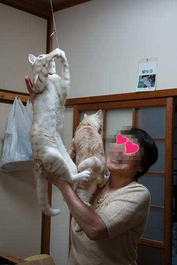 自分では届かない紐の先に、抱いてもらってチョイチョイするのがブームのようで・・・♪