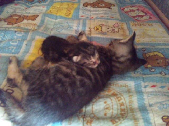 最後に・・・仔ニャンズにおっぱい吸われて困ってる凛ちゃんはかなり面白いw仲良く一緒に寝てましたー!(*´エ`*)あー・・・少し癒されるー・・・♪