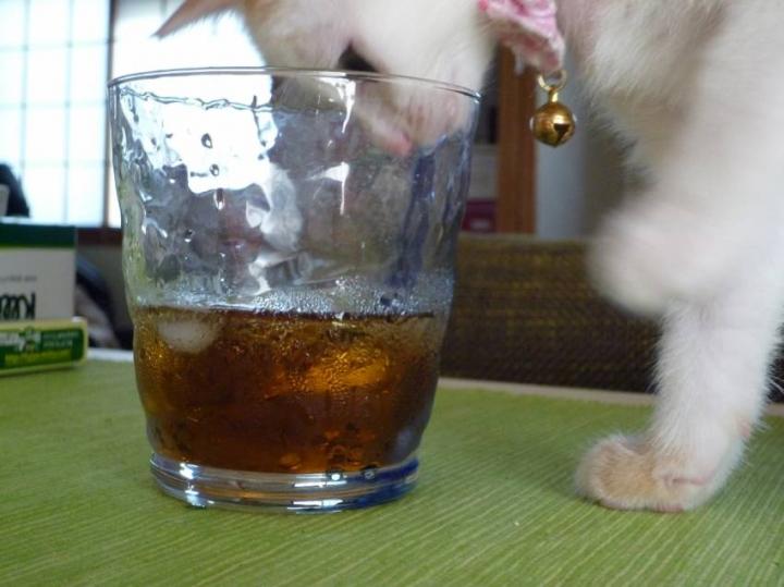氷の入ったコップが珍しくて、氷にじゃれてました(*^_^*)