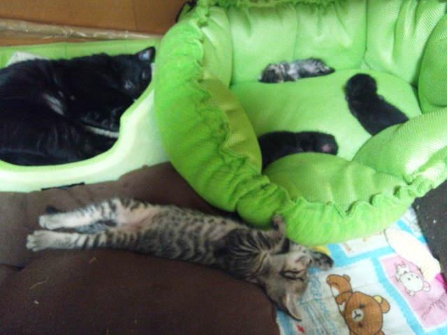 トッティだけが常に仔ニャンズと寝てます。母性だけが残っちゃったんかなぁ・・・いいお母さんっぷりで微笑ましいたけどさ。