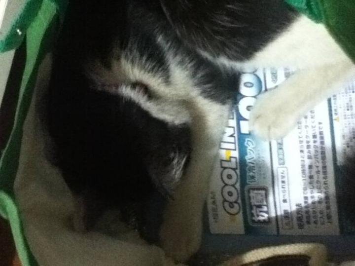 行ってみると、本日買い物して、置きっぱなしの保冷バッグをサスケがあさってる!!(゜o゜)