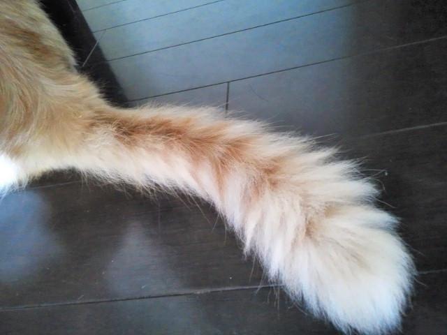 長い毛が抜けて部屋中毛だらけ(;¬_¬)