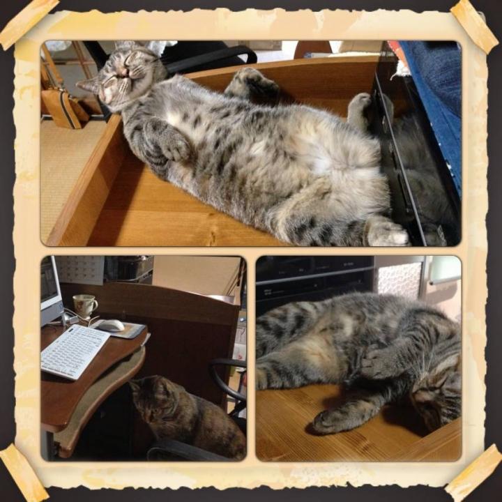 プリンター専用台も昼寝御用達場となり…「プリントアウトできませぇ~ん」