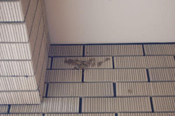 玄関上にあちこち泥をつけインターフォンも表札も泥んこw