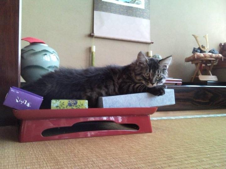 床の間をバックに、余裕なお供え猫のコタロウでした、、、