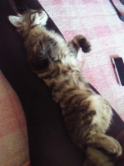 やがてセピアが遊び疲れて寝始め、猫で遊び始める人間二人…(笑)