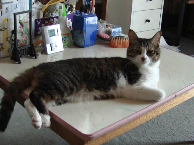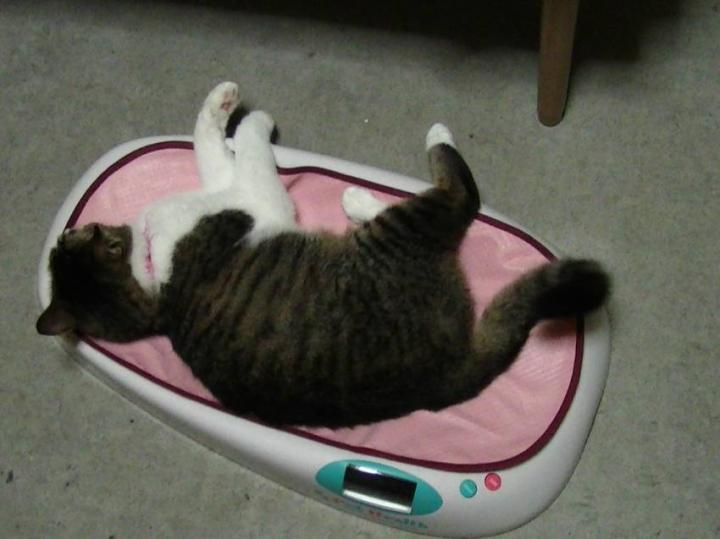 先日、体重を量ろうとしたらすっかりくつろいでいますが・・・