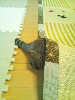 最近リビングの敷物を夏用に替えたんですが、もぐり込むことを覚え一人遊びします(〃^ー^〃)