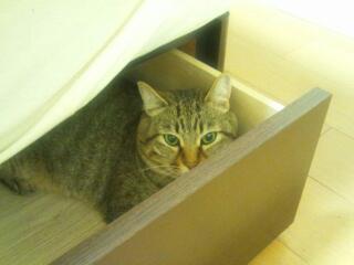 我が家のベッド、下に引き出しがついてますが、これも自分で開けて入っちゃいます(^_^;)