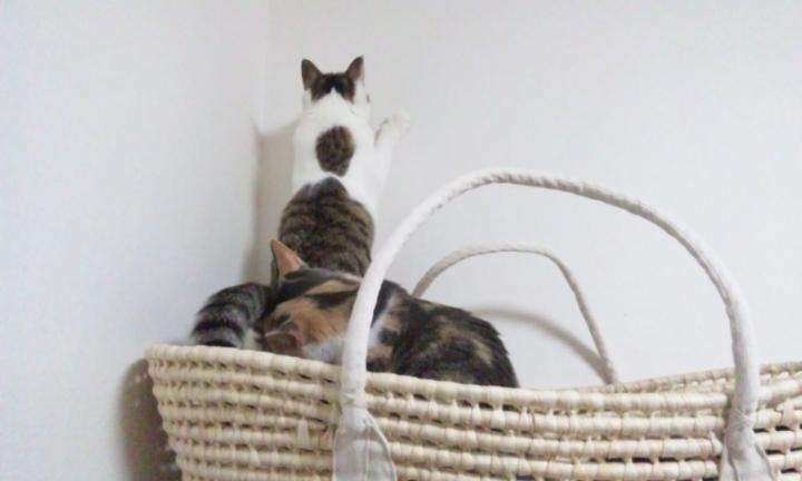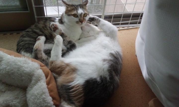 ↑病院から帰ってきたリンちゃんに甘えるナナ。