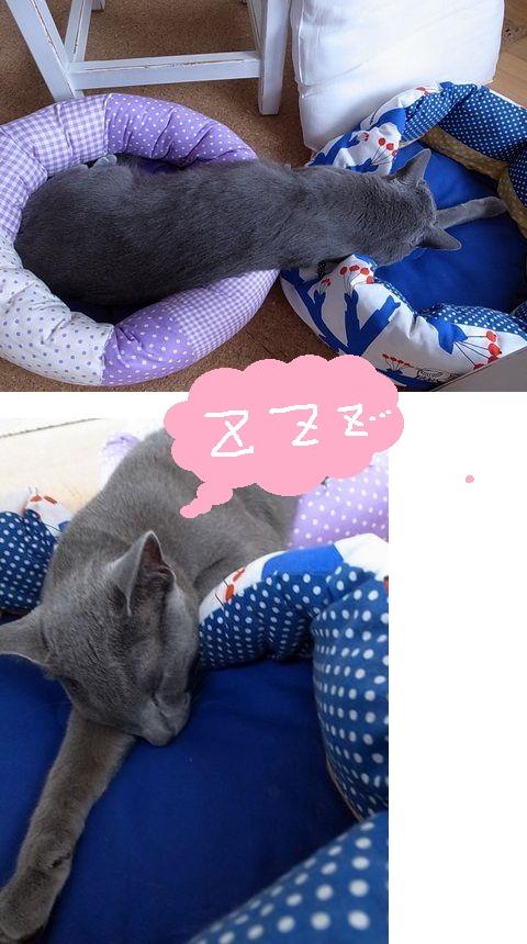 好きな方を使ってくれればと並べた猫ベッド、律義に両方とも使って寝てくれてますが(汗)