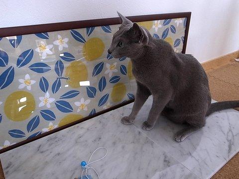 ってことで、玄関とほぼ同じ色味の大理石マットを買ってみたのだけど・・・かなり不審がってる(^^;
