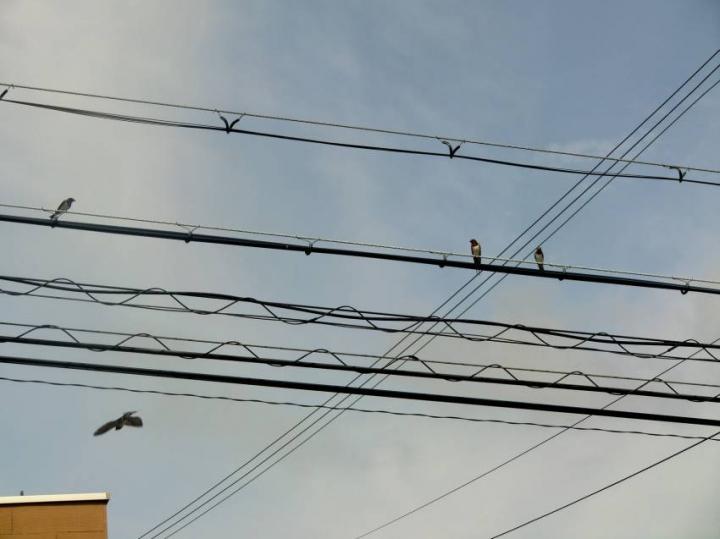 そのときは、うち以外にも、巣があちこちにあったみたいで、すごい数のツバメが電線に止まってるのを見ました。