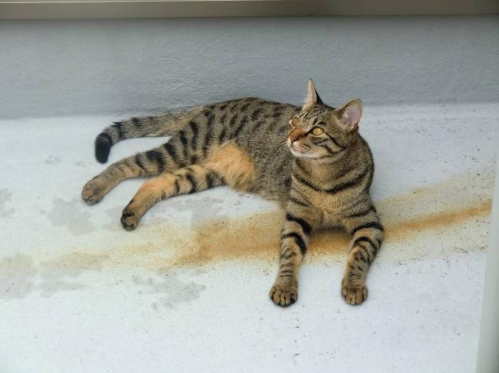 マリンもいっしょにベランダへついてきて、寝そべりながらツバメ観察。