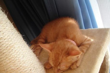 キャットタワーが大好きで、よくボックスの中でお昼寝をしていました。