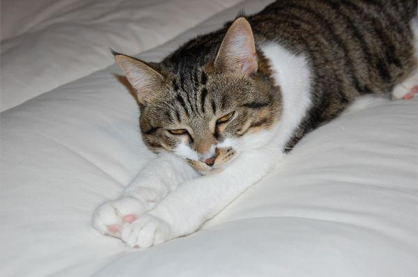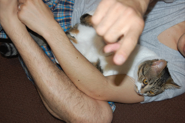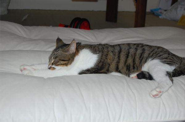 私には二人っきりの時しか甘えてこないのにパパには堂々とこんなに腹を出して甘えるラテ。