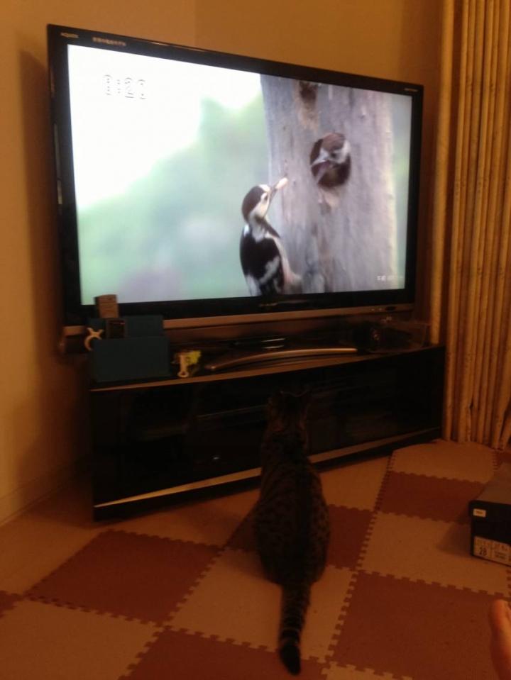 じ~っと見てて、その後、テレビ台に上ったので、さすがにそれは叱って下しました(^_^;)