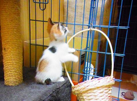 入ろうとした白三毛ちゃんは、上が気になった様子。