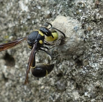 この種類の蜂は巣で子育てせず、卵と餌になる虫とを一緒に入れておき