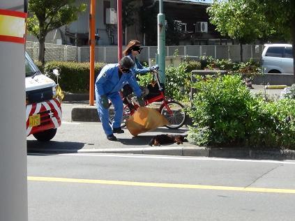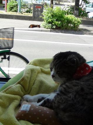 そこでご主人様手袋をはめて歩道まで移動させてあげました