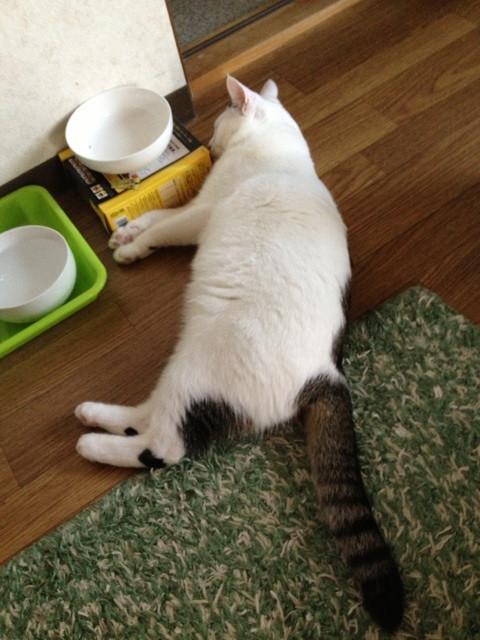 しばらくしたら、ごはんの入れ物の横でふて寝してました(^◇^;) (笑)