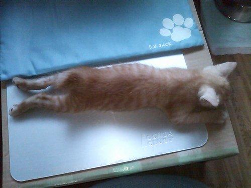 右足先から左耳先まで46.5センチ。朝はお腹ポコポコでも、仕事から帰ってくると痩せ細っている芒虎です。今すごい勢いで体が大きくなってるんだろうな~。