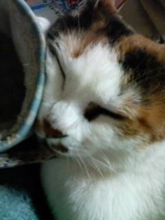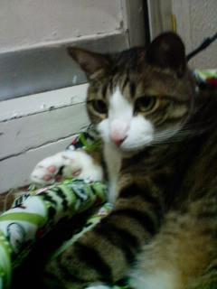 ミーコは下駄箱の寝床から降りてきて、ず~っと私にくっついたままでした。