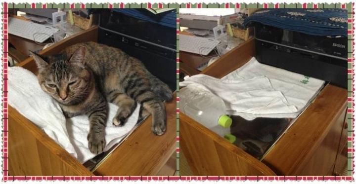 いま私のニャイブームのプリンター前に設置して、凍らせた1Lのペットボトルを置いてタオルを敷くのね。