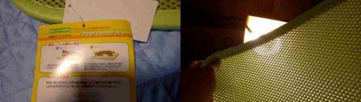 ビビッと直感が働いて、あとはトイレ砂を買いだめしたり、水やり用の器を新調したり。精算済ませて家に帰って、早速マットをチェックします。