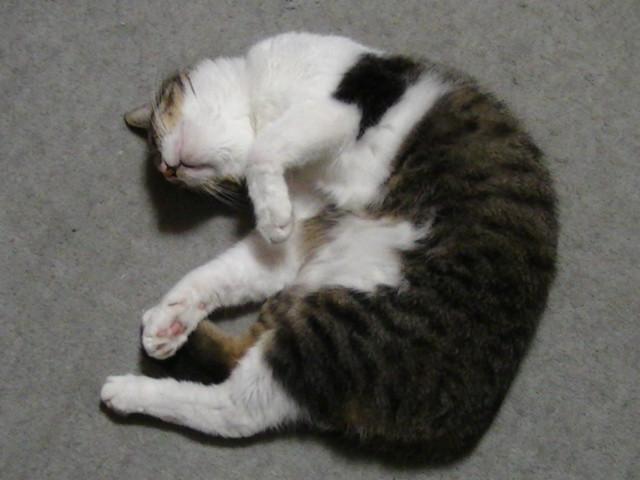 暑くなってフローリングでゴロリンコ(手がかわいい←しつこい)