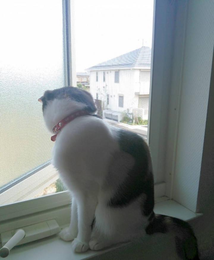 そんなミンちゃんは最近出入り自由になったウォークインクローゼットの窓から外を眺めるのが気に入ったようです。窓の下に椅子があるので高い所が苦手なミンちゃんでもラクラク登れます。