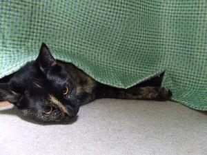 最近カーテンの影にもぐるのがお気に入り。