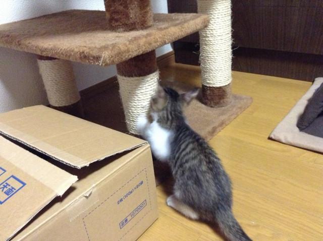 爪とぎも始めて、タワーにも乗るようになりました。