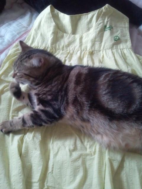 ちょっとベッドの上に置いといたらいつのまにかレオが寝そべっていた(*_*;