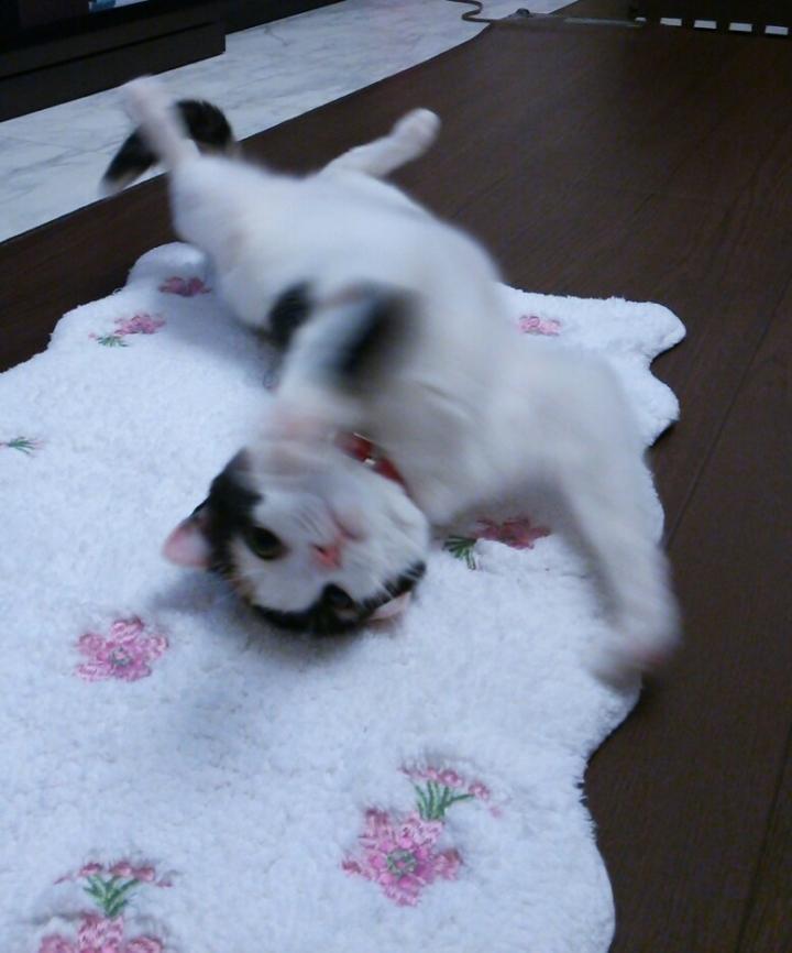 包みを開けて見ていると、ミンちゃんがやって来てクンクン匂いを嗅いだと思ったら突然…