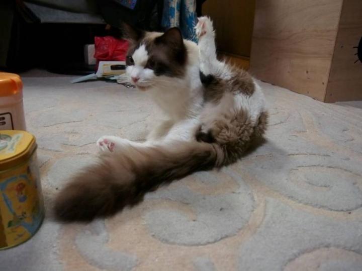 昨日の夜に今居る場所をダンボール箱で改造し、落ち着いた今日の朝になりボケボケですが、少し無理やり写真を撮る事が出来ました。