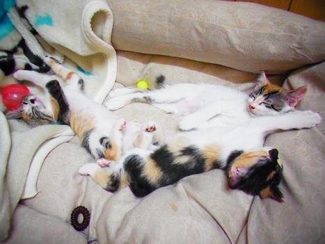 夜になると一段と活動的な三毛ちゃんず。