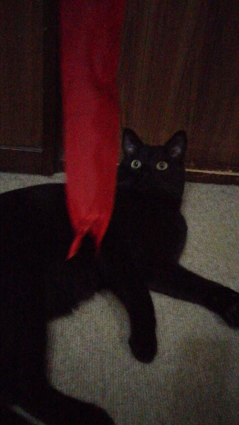 姪っ子の誕生日ケーキについていたリボンをゲットして大興奮のユウタ。