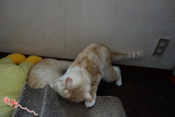 臆病で姿を隠して寝る花子。