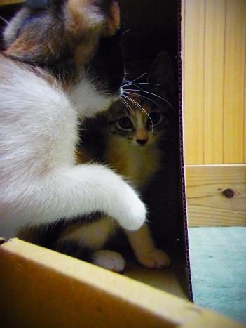 そしたら、実は縞三毛ちゃんも気になってた様子。
