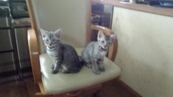 ん~ 椅子がなければ 今のところ登れないから2匹まとめてテーブルから離れたところへ
