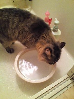 カリカリと一緒に水をあげてもお風呂の水しか飲まないし・・・