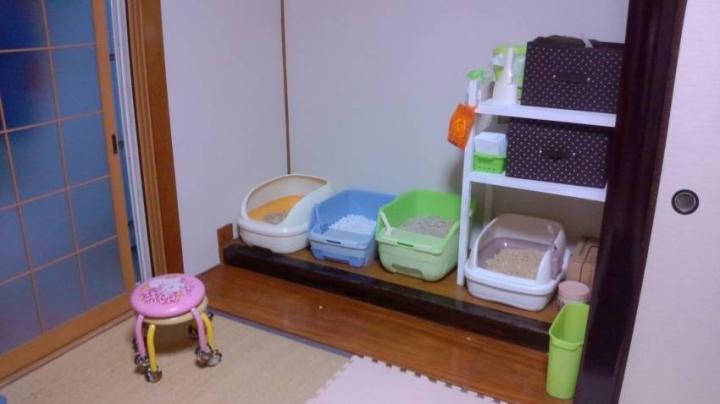 和室の立派な床の間をニャンズトイレコーナーに変身させましたw