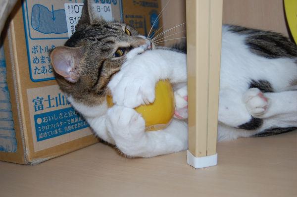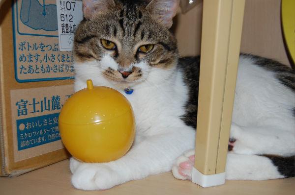 昼間は押入れでド◯えもんしてるラテとその梨アイス容器。