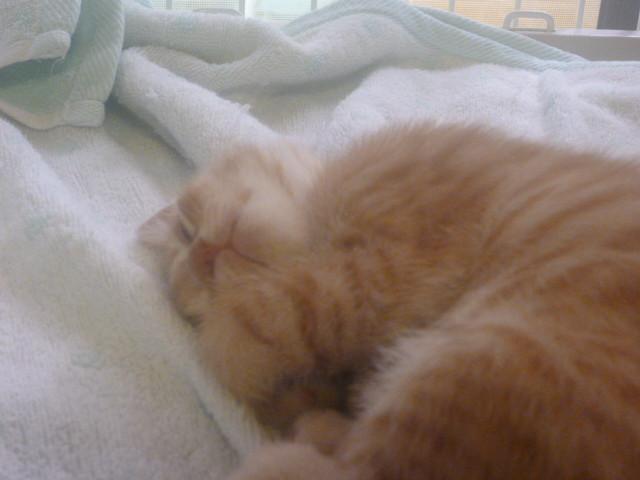 爆睡なのですが、この隙に爪を・・・と前足を持つと