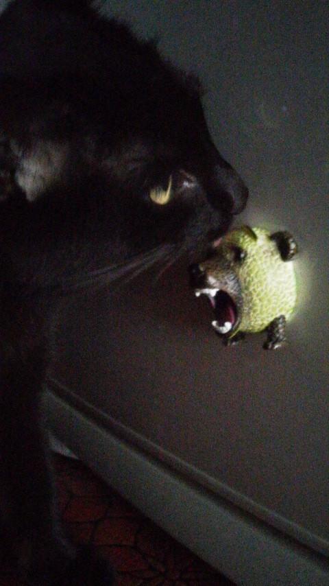 散々じゃれた後、くわえてどこかに持っていってしまいます。
